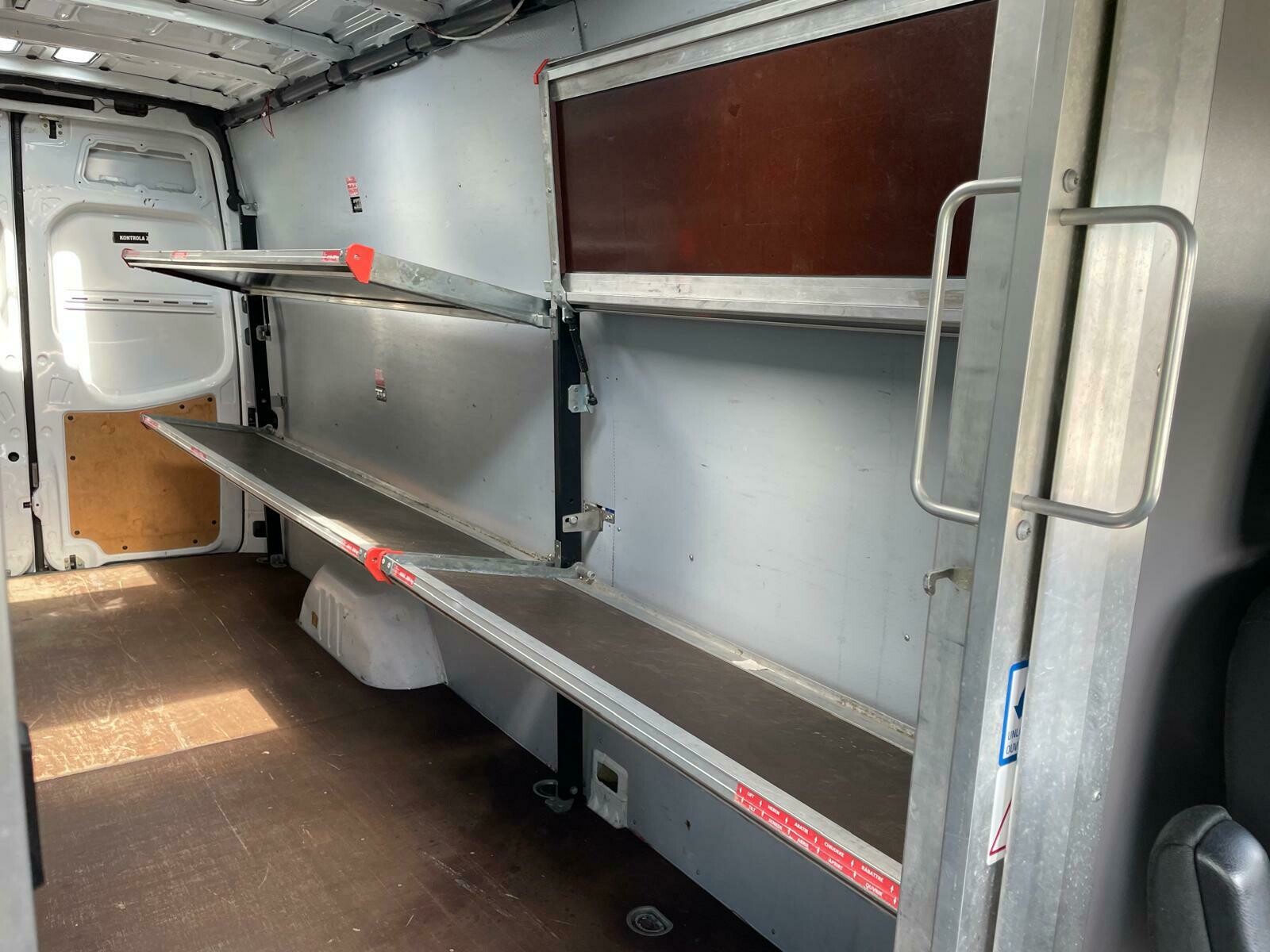 *6 półek z antypoślizgowej sklejki wodoodpornej wykończonych aluminium (grubość sklejki 10mm o maksymalnej ładowności 200kg każdej z półek).