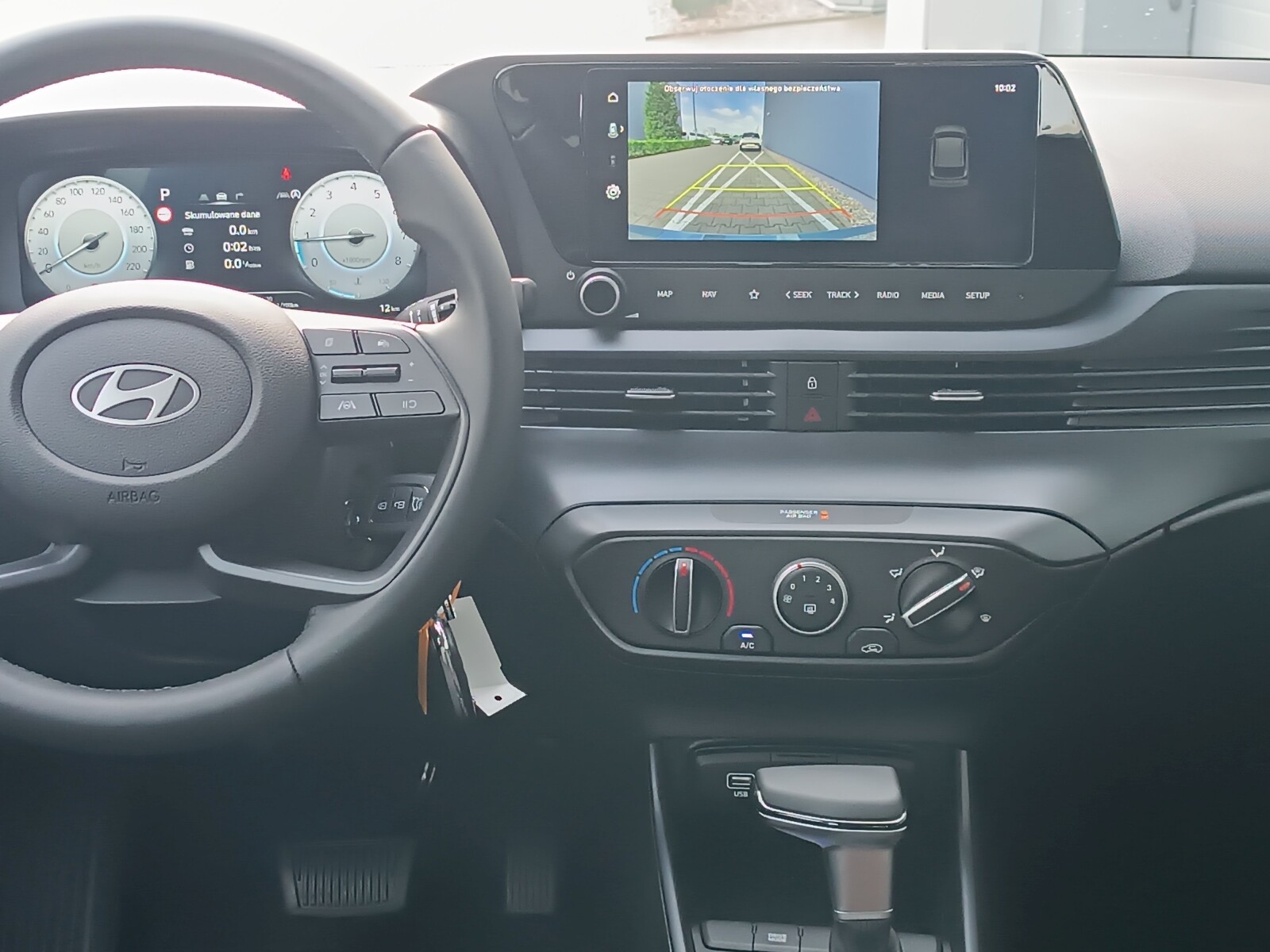 <b>Zapytaj o dostępne formy finansowania (kredyt/leasing/wynajem)</b>   <b>Systemy wsparcia kierowcy dla wersji MODERN:</b> Tempomat Wybór trybów jazdy Asystent utrzymywania pasa ruchu (LKA), Monitorowanie uwagi kierowcy (DAW), Ostrzeganie o odjechaniu poprzedzającego pojazdu (LVDA), Asystent świateł drogowych (HBA) Sygnalizacja spadku ciśnienia w oponach Inteligentny asystent ostrzegania o ograniczeniach prędkości (ISLA) Ogranicznik prędkości Asystent unikania kolizji czołowych (FCA) z wykrywaniem pieszych i rowerzystów Tylne czujniki parkowania Kamera cofania z dynamicznymi liniami pomocniczymi Podążanie na pasie ruchu (LFA)   <b>Pozostałe, wybrane, elementy wyposażenia dla wersji MODERN:</b> <b> Bezpieczeństwo:</b> Poduszki bezpieczeństwa przednie, boczne i kurtynowe ABS + ESC+ HAC + MCB Mocowania ISOFIX na tylnych fotelach Blokada zapobiegająca otwarciu tylnych drzwi przez dzieci   <b>Komfort:</b> Elektryczne wspomaganie kierownicy Klimatyzacja manualna Kanały nawiewu powietrza w drugim rzędzie Cyfrowe zegary z 10,25" kolorowym wyświetlaczem System monitorowania tylnej kanapy (RSA) Gniazdo 12V, Port USB w konsoli centralnej, Uchwyty na napoje Przygotowanie do montażu haka Immobilizer, Centralny zamek, alarm   <b>Multimedia i nowoczesne technologie:</b> System multimedialny z 10,25" ekranem dotykowym i cyfrowym radiem DAB, Nawigacja z usługami Hyundai LIVE i system telematyczny Bluelink, Łączność Android Auto i Apple Car Play Głośniki w drzwiach przednich i tylnych, Głośniki wysokotonowe System ratunkowy eCall Sterowanie radiem na kierownicy System Bluetooth z obsługą komend głosowych   <b>Wewnętrzne:</b> Fotel kierowcy z regulacją wysokości Tapicerka materiałowa Szyby sterowane elektrycznie (kierowcy z funkcją Auto Up / Down) Oświetlenie drugiego rzędu, Oświetlenie przestrzeni bagażowej Haczyki do mocowania bagaży Kierownica i dźwignia zmiany biegów obszyte skórą   <b>Zewnętrzne:</b> Szyby tylne barwione Reflektory halogenowe (światła mijania i drogowe) Automatyczne włączanie świateł Światła do jazdy dziennej LED Tylne światła przeciwmgielne Lusterka boczne elektrycznie sterowane i podgrzewane Felgi aluminiowe 16'', Zestaw naprawczy   <b>pojazd fabrycznie nowy</b> <b>dostępny od ręki – plac Szczecin-Ustowo</b>   Pełną specyfikację wyposażenia możemy wysłać mailem. <b>Jeśli szukasz innego modelu, wersji wyposażenia, koloru - zadzwoń lub napisz</b> <b>Podaj swój numer telefonu, to ułatwia kontakt z doradcą</b> <b>Jeśli nie ma gotowej oferty, to realizujemy zamówienie w ciągu ok. 3 miesięcy</b>   <b>WAŻNE INFORMACJE:</b> ► 5 lat gwarancji - Pięcioletnia gwarancja bez limitu kilometrów, zapewnia 5 lat gwarancji mechanicznej oraz 12 lat na perforację nadwozia. ► 5 lat Assistance - Pięcioletnia usługa pomocy drogowej obejmuję próbę naprawienia pojazdu na miejscu. W zależności od sytuacji zapewniamy : holowanie do najbliższej stacji ASO Hyundai, pojazd zastępczy, transport pasażerów lub zakwaterowanie. ► 5 lat bezpłatnej kontroli stanu technicznego - Raz w roku użytkownik ma prawo do wykonania w ASO bezpłatnego sprawdzenia 8 punktów kontroli samochodu. Usługa jest wykonywana poza przeglądami wynikającymi z harmonogramu przeglądów okresowych.   Zawartość treści umieszczona na stronie internetowej służy jedynie celom informacyjnym i nie stanowi oferty w rozumieniu przepisów Kodeksu Cywilnego oraz opisu towaru, ani zapewnienia w rozumieniu art. 4 Ustawy z dnia 27 lipca 2002 roku, o szczególnych warunkach sprzedaży konsumenckiej. Wszelkie uzgodnienia właściwości i specyfikacji pojazdu następują w umowie sprzedaży.
