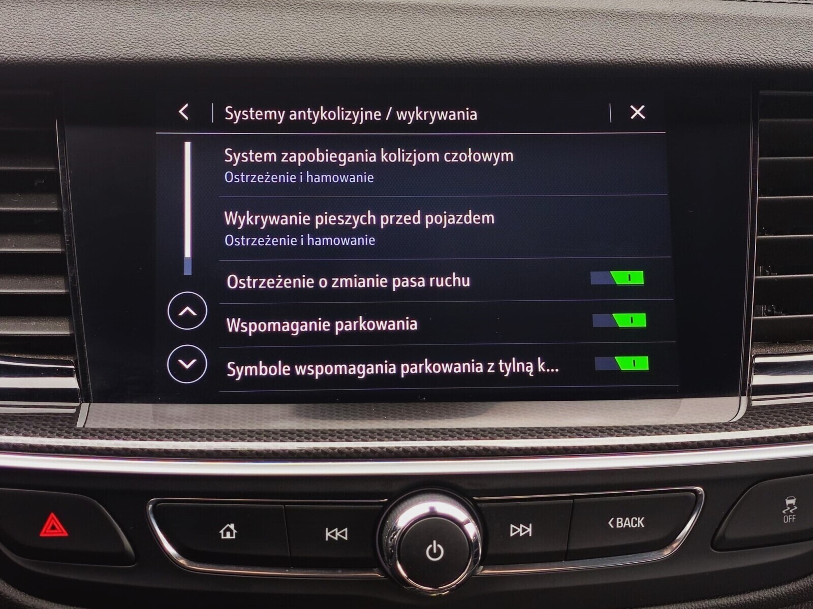 kontrola odległości z przodu (przy parkowaniu)